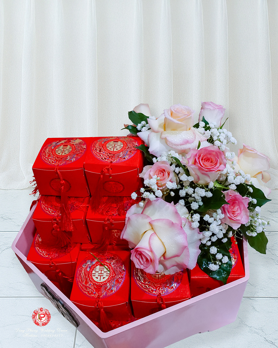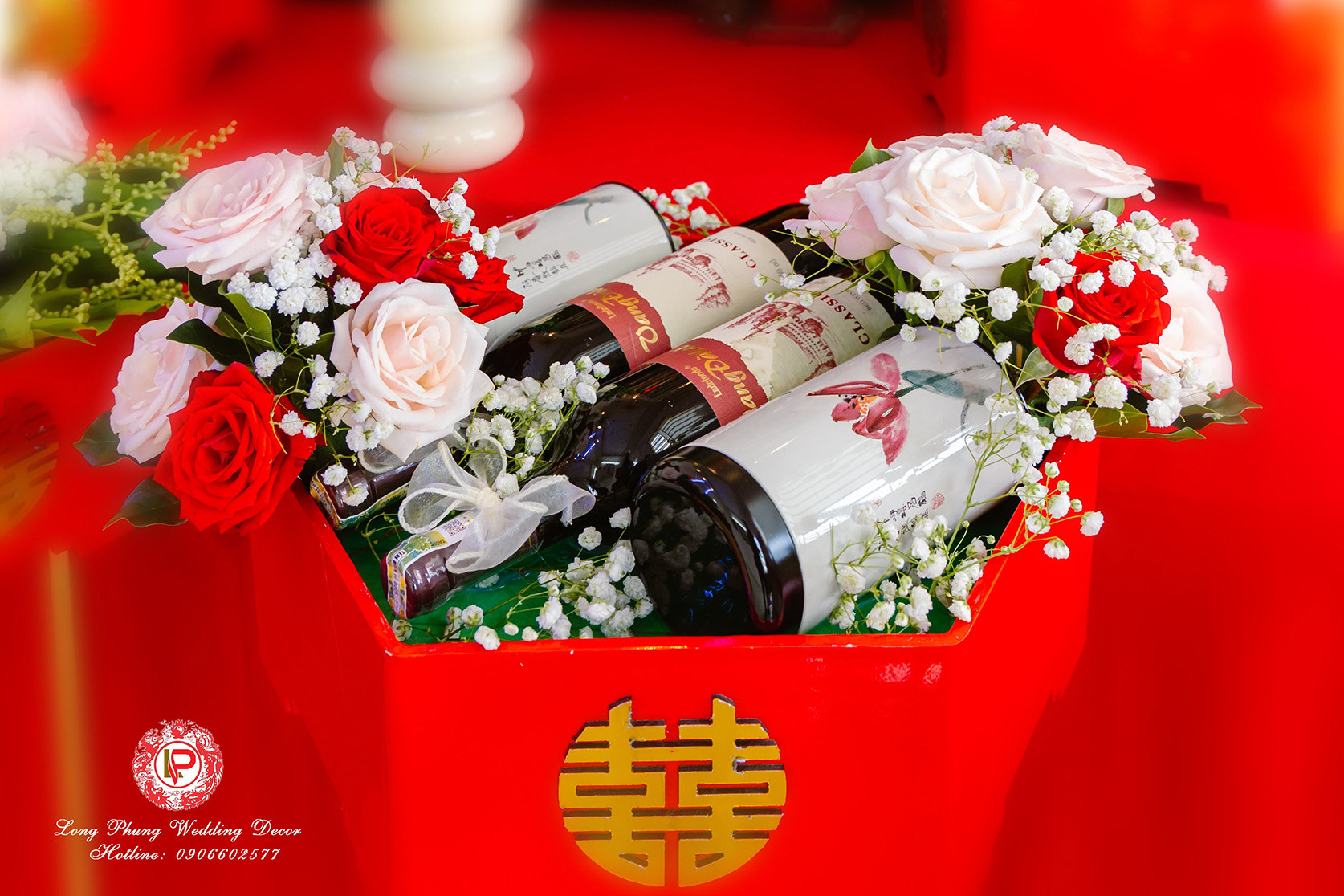 3 .Trà sen hộp kem- rượu Vang ĐaLat- đèn long phụng(mỗi loại 1 cặp)