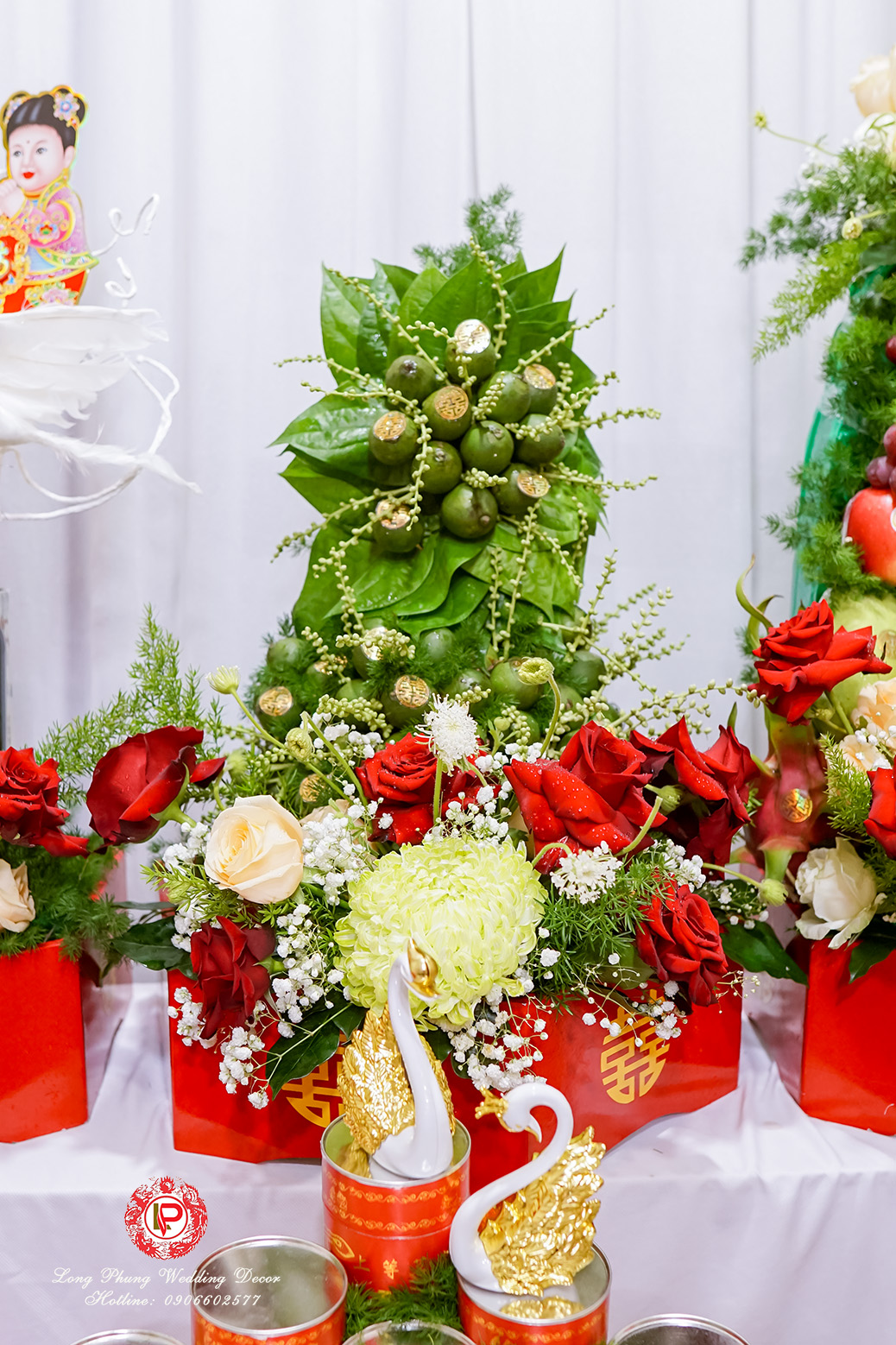 Tại Cưới Hỏi Long Phụng, từng bộ mâm quả được thiết kế tinh tế, kết hợp truyền thống và hiện đại, mang đến vẻ đẹp sang trọng và chuẩn phong tục.