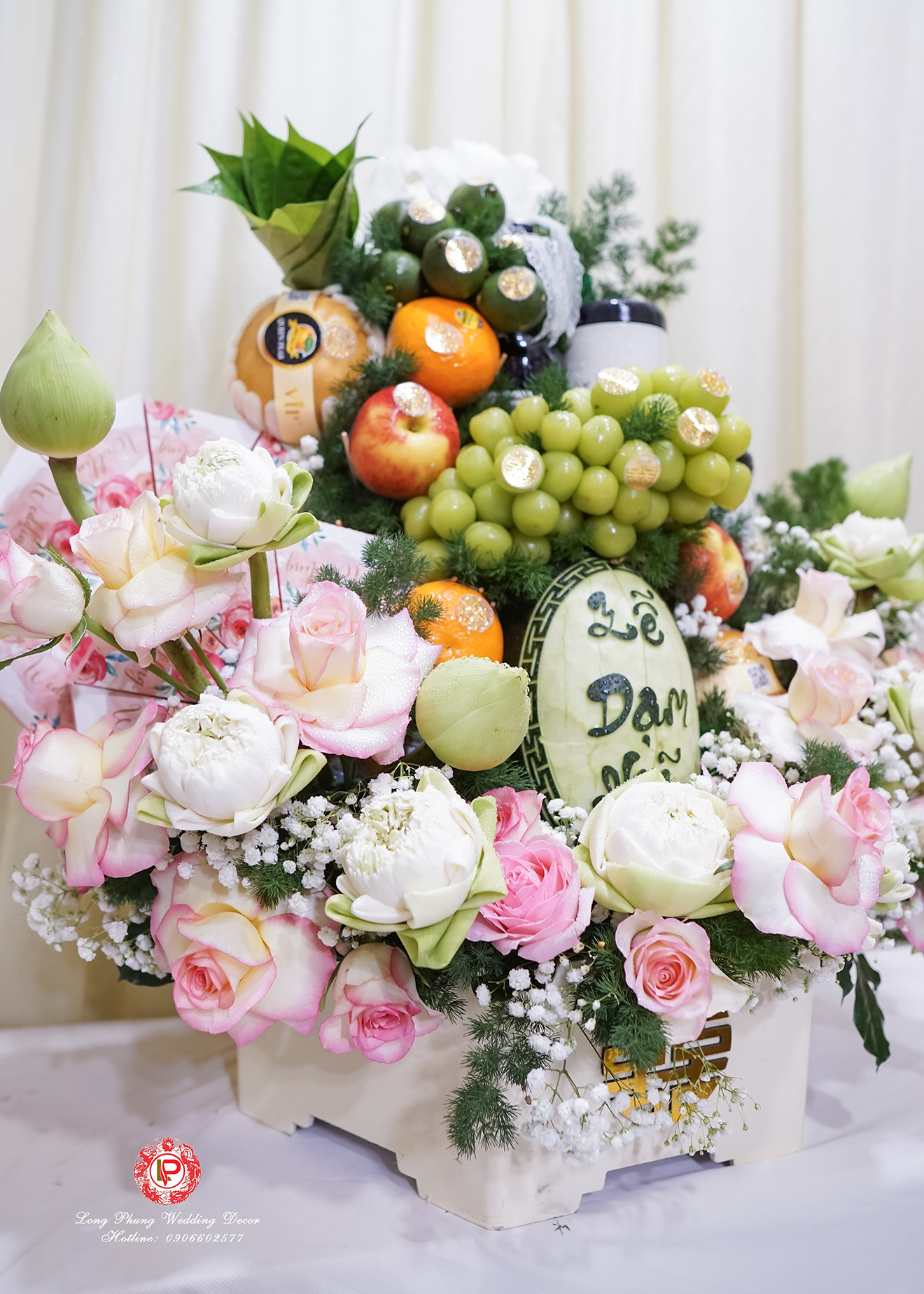 * trái cây kèm quả dưa khắc LỄ DẠM NGÕ