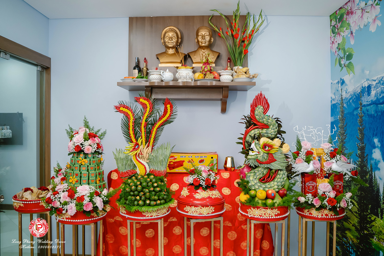 Mâm quả đươc xem là sính lễ mà nhà trai gửi đến nhà gái thể hiện sự chân thành, lời mở đầu kết giao giữa hai nhà, mở đầu cho một mối quan hệ mới, Gói mâm quả kết tháp rồng phụng đặt biệt này làm siêu lòng cả những cặp đôi chỉnh chu nhất ,với cặp long phụng khác biệt tỉ mĩ đến từng chi tiết nhỏ nhất có thể ,...