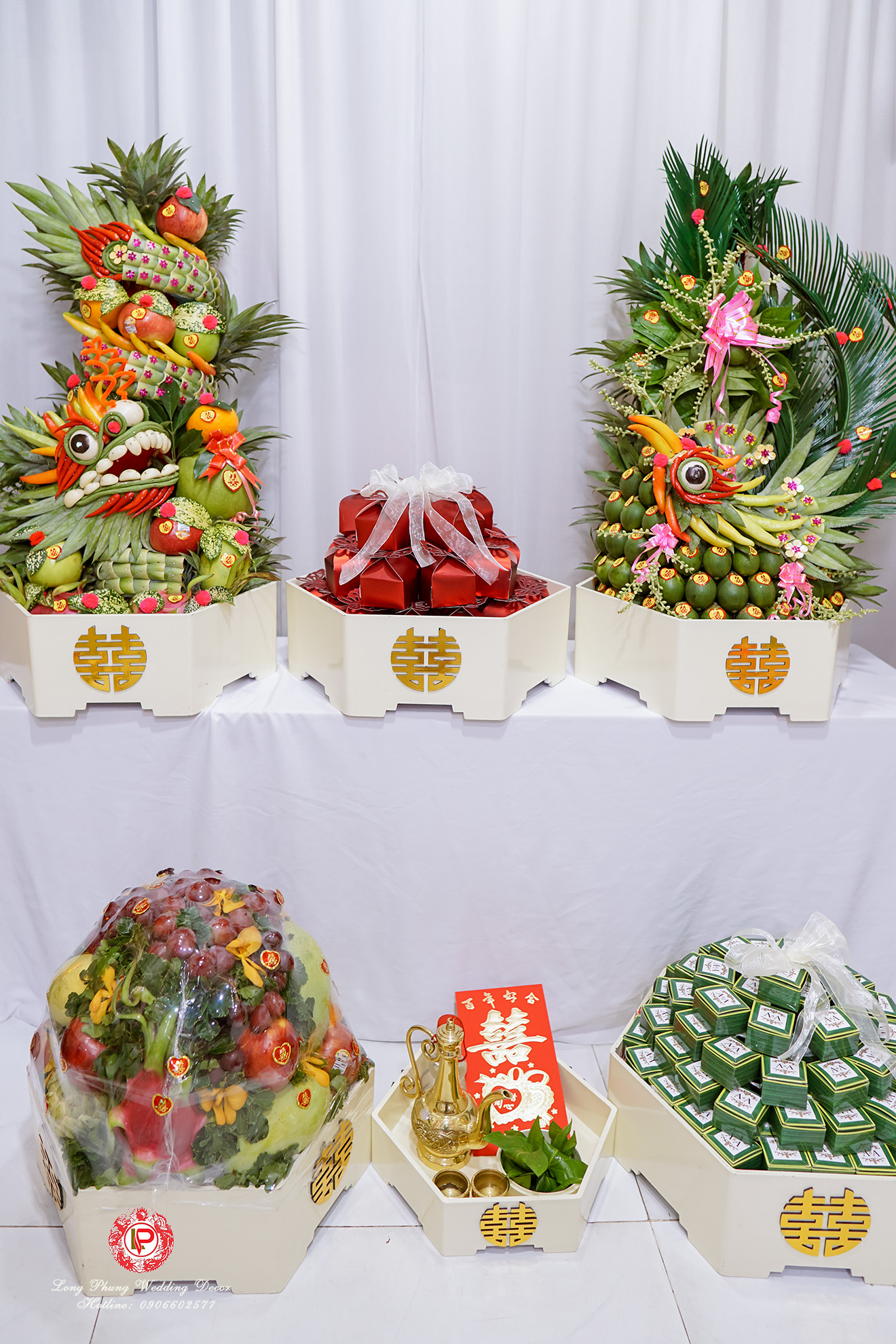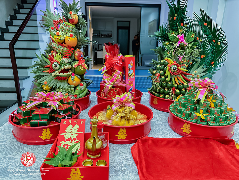 Mâm quả được xem là sính lễ mà nhà trai gửi đến nhà gái thể hiện sự chân thành, lời mở đầu kết giao giữa hai nhà, mở đầu cho một mối quan hệ mới. Gói mâm quả nâng cao này với ưu thế giá cả vừa phải và điển nhấn là cặp rồng phụng hoành tráng tạo điểm nhấn cho bộ mâm thêm ấn tượng