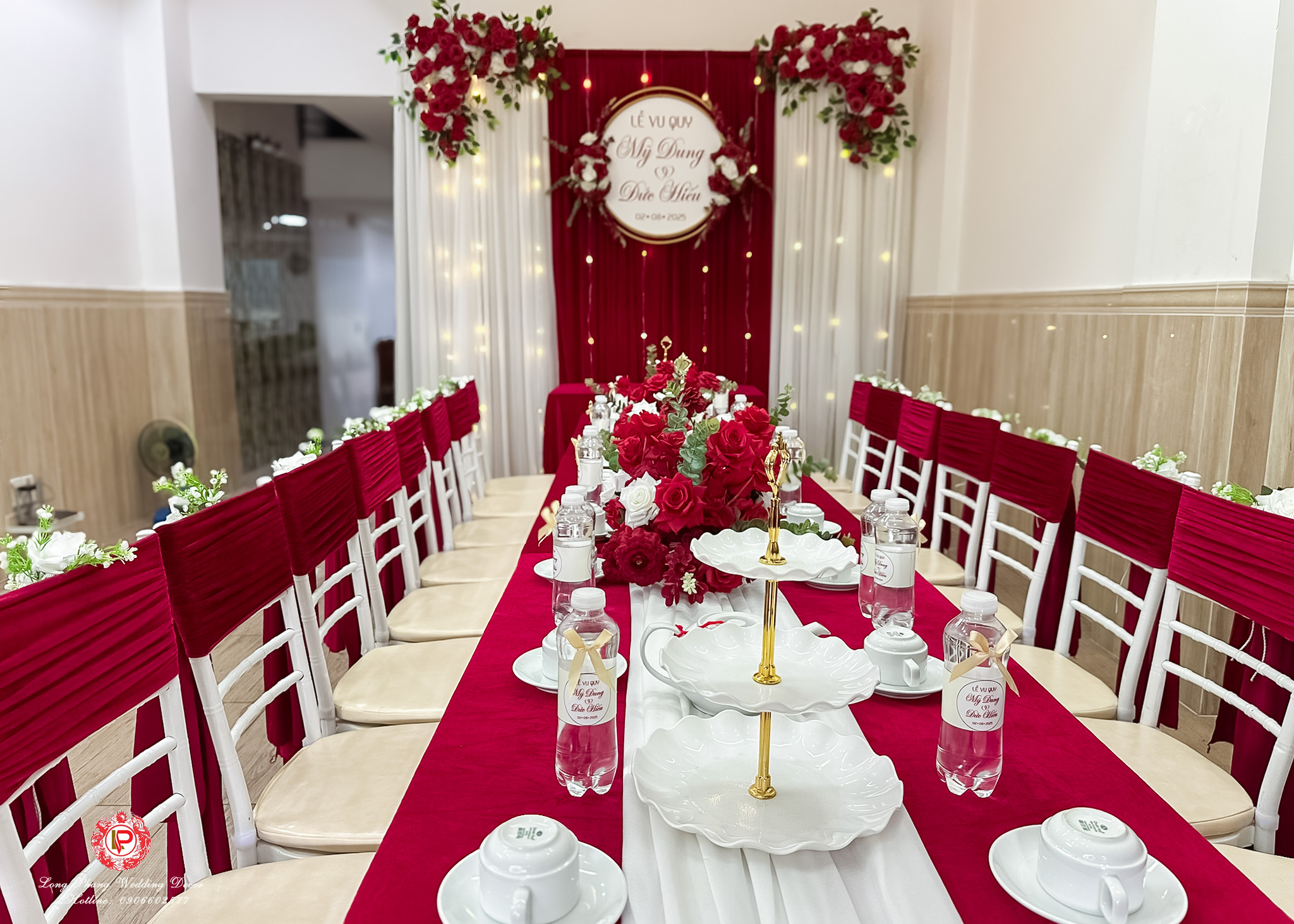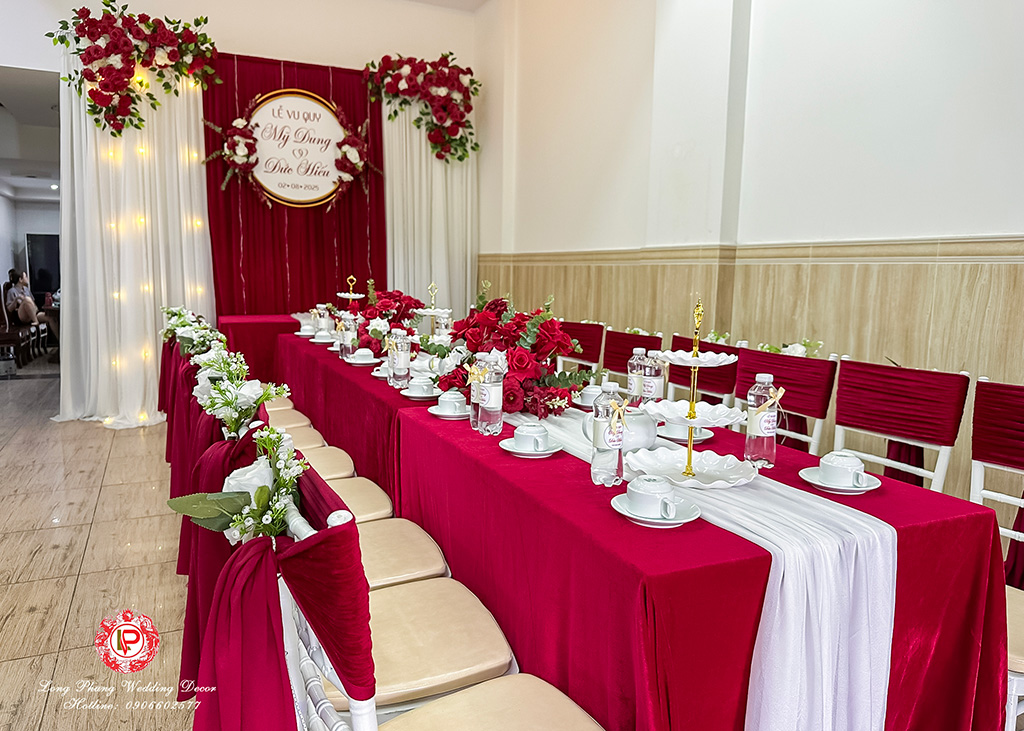 4/ Bàn hai họ 12 ghế nệm (TIFANY) và nơ theo tông bạn chọn